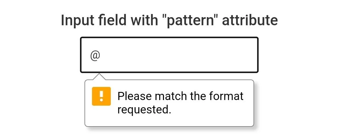 <input type="text" name="username" pattern="[A-Za-z0-9]+">It specifies a regular expression that the value is checked against on form submission. For example, the above pattern allows only capital and small letters along with full numbers and no special character. When a character which was not allowed is input, it would show error like this: